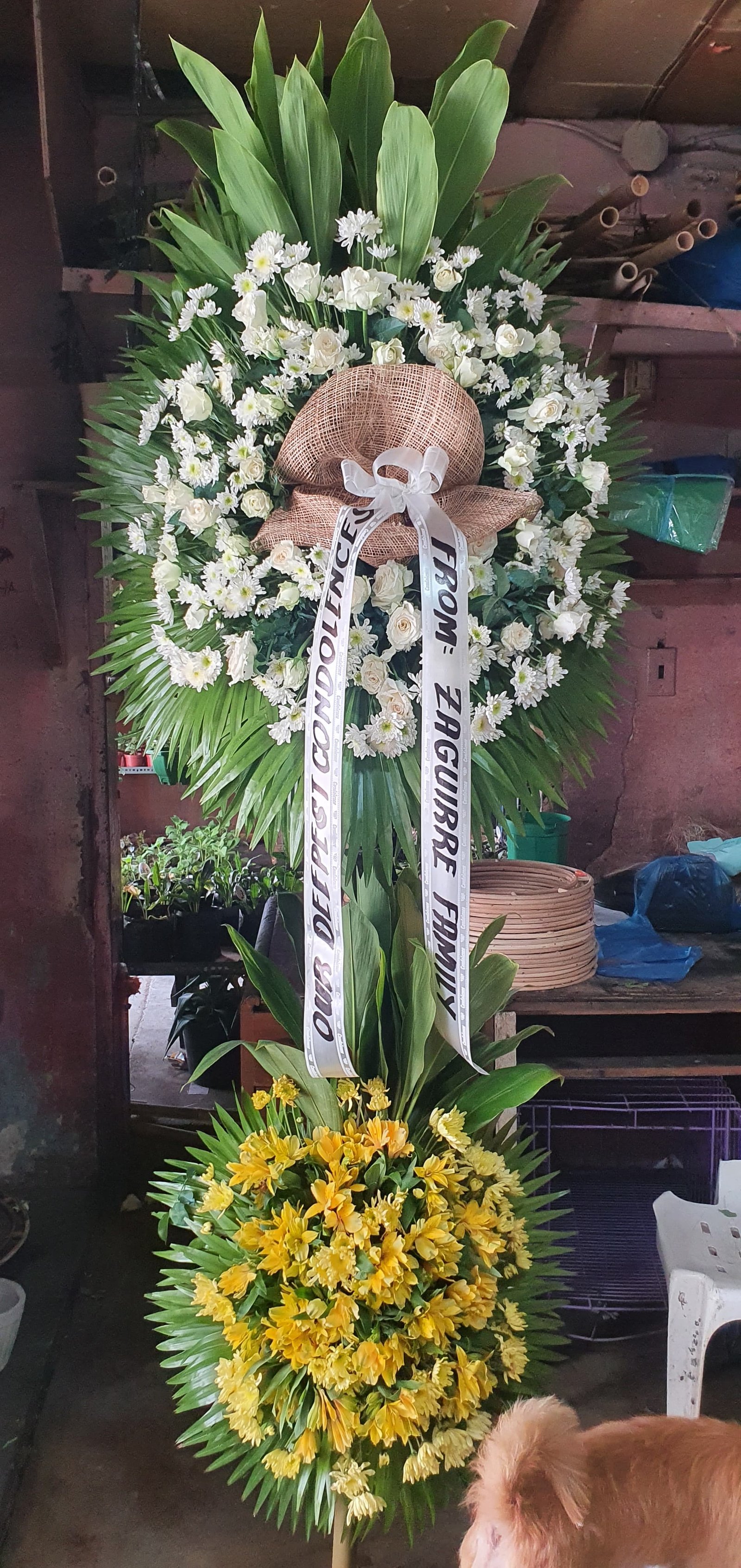 Yellow & White Sympathy Standing Spray